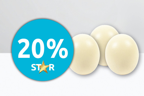 Von Dienstag, 17. bis Samstag, 21. Februar profitierst du von 20% Rabatt auf Strausseneier (creme, 15 cm). Komm vorbei, deck dich ein oder bestelle bequem von zuhause aus in unserem Webshop.
